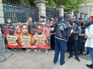Ger Leddin spoke to Naomi and Blessing, two migrants who were part of a protest group outside Leinster House yesterday seeking amnesty for migrants.